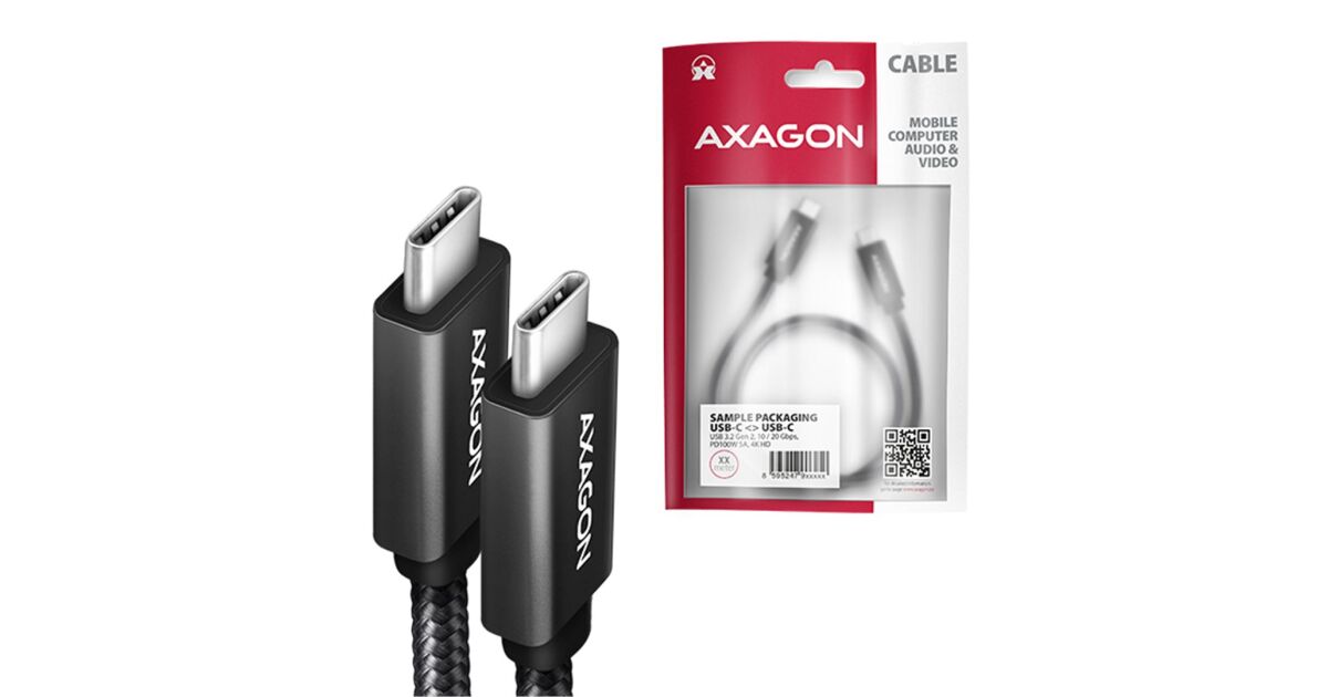 Cablu AXAGON USB-C 3.2 Gen 2: viteză de 20Gbps și Power Delivery 100W ⚡