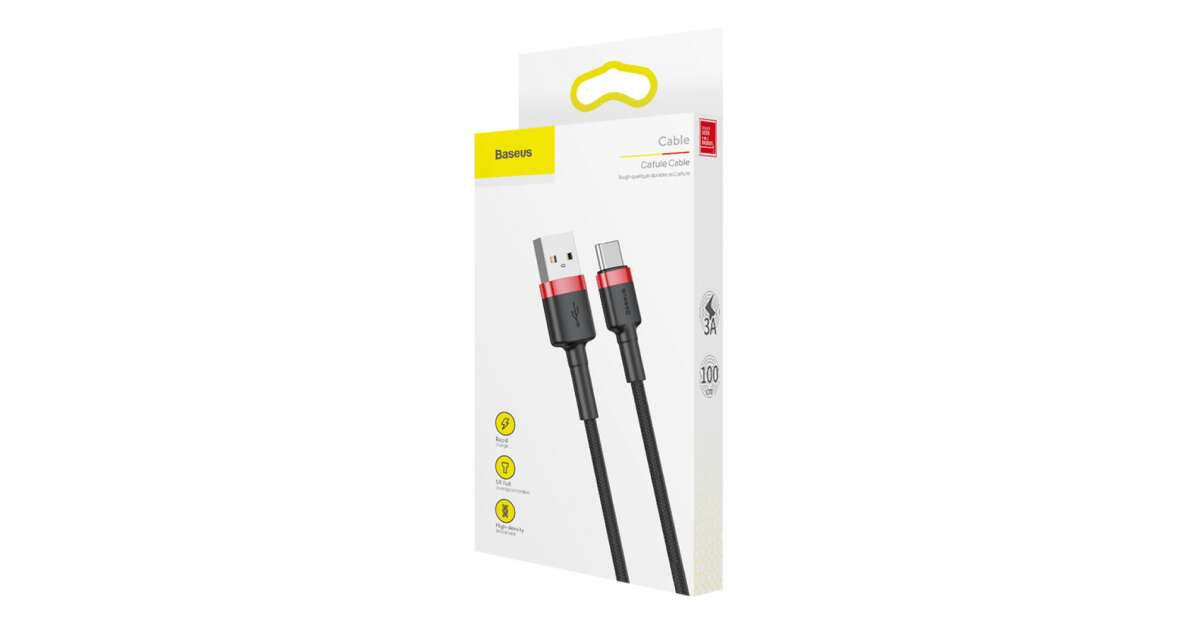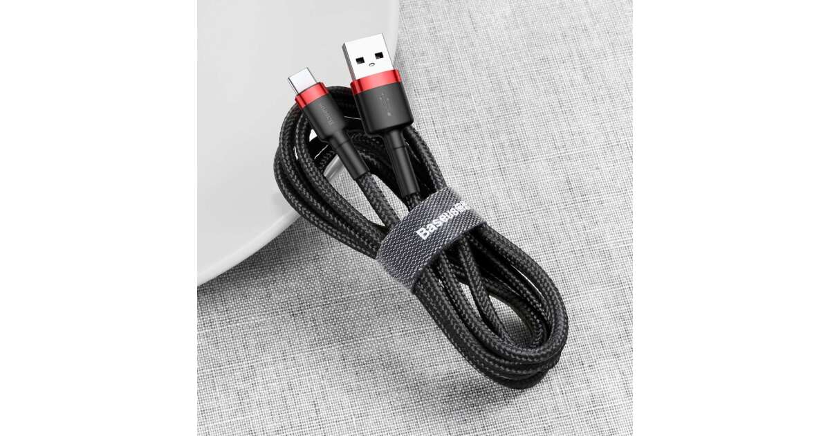 Cablu Date si Incarcare Baseus, Cafule CATKLF-B91, USB la USB Type-C, 3A, 1m, Negru - Rosu (CATKLF-B91) Descriere