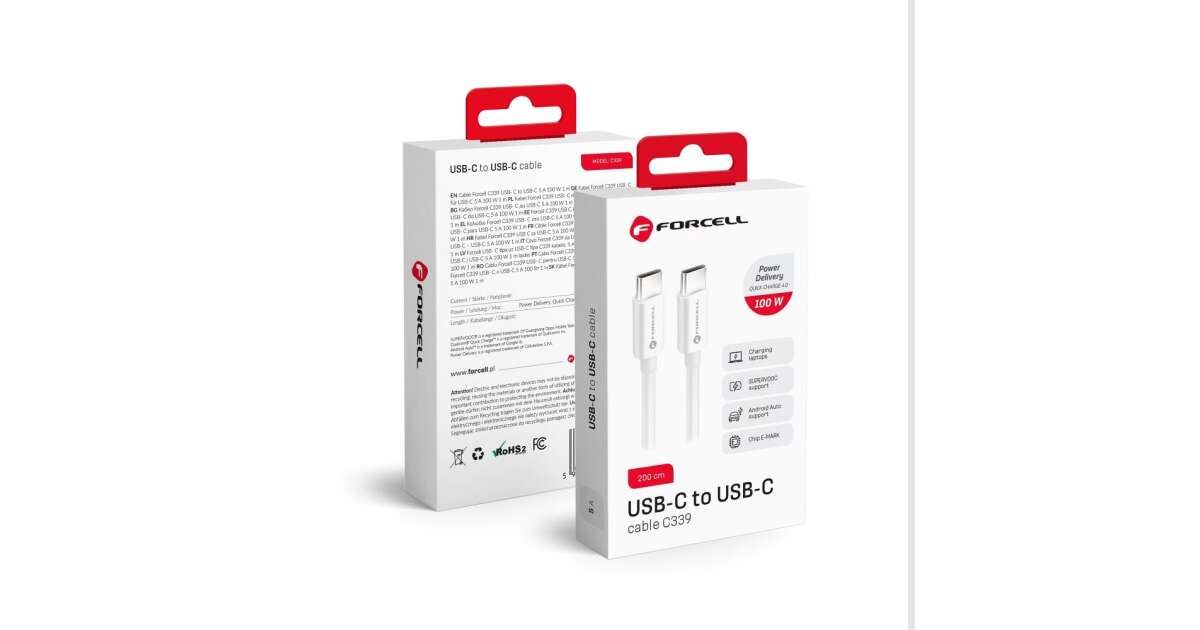 Cablu de date, Tip C, 5A/20V, PD100W, C339, 2 m, Alb