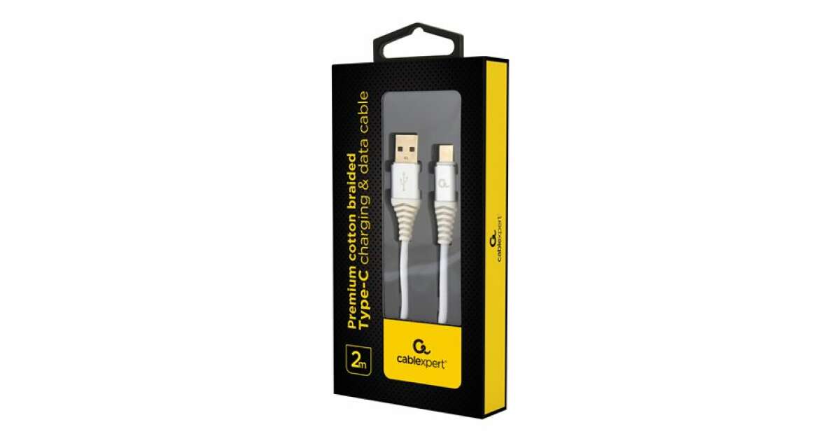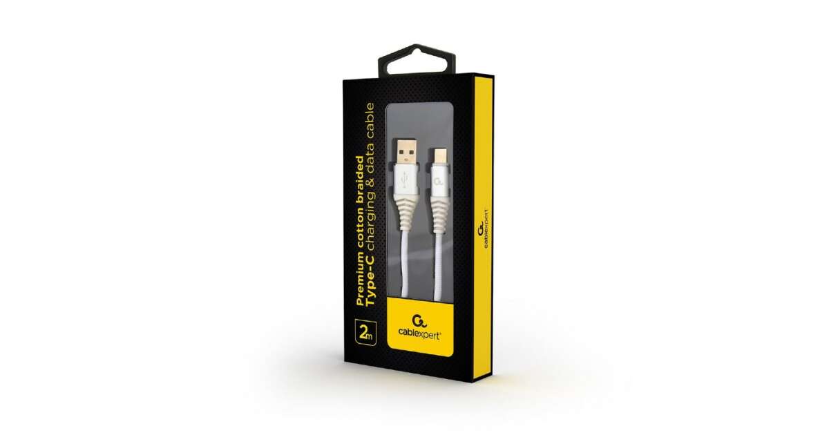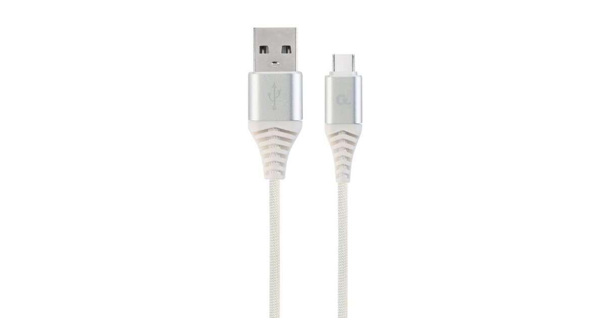 Cablu de date/incarcare, Gembird, USB Tip C, 2m, Argintiu/Alb (CC-USB2B-AMCM-2M-BW2) (CC-USB2B-AMCM-2M-BW2) Descriere