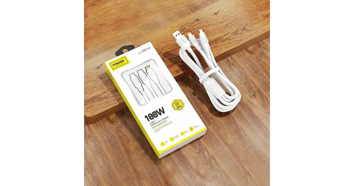 Cablu Foneng X80 3in1 USB la USB-C / Lightning / Micro USB, 100W, 1,2 m (alb) Descriere