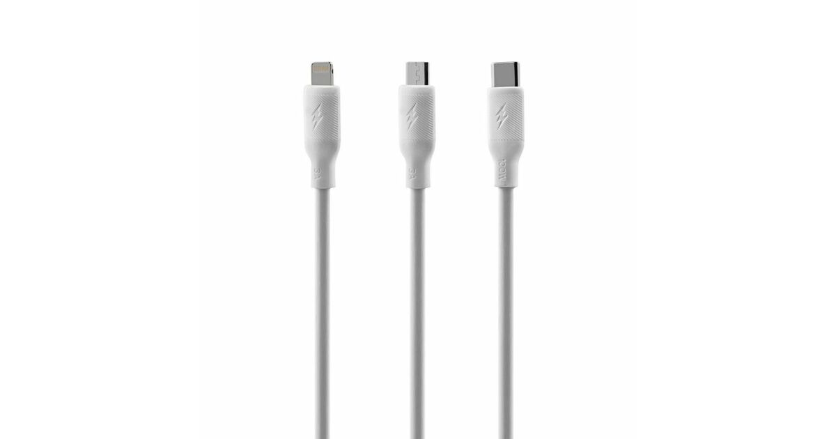 - Design 3 în 1: Conectori USB-C, Lightning și microUSB pe un singur cablu.