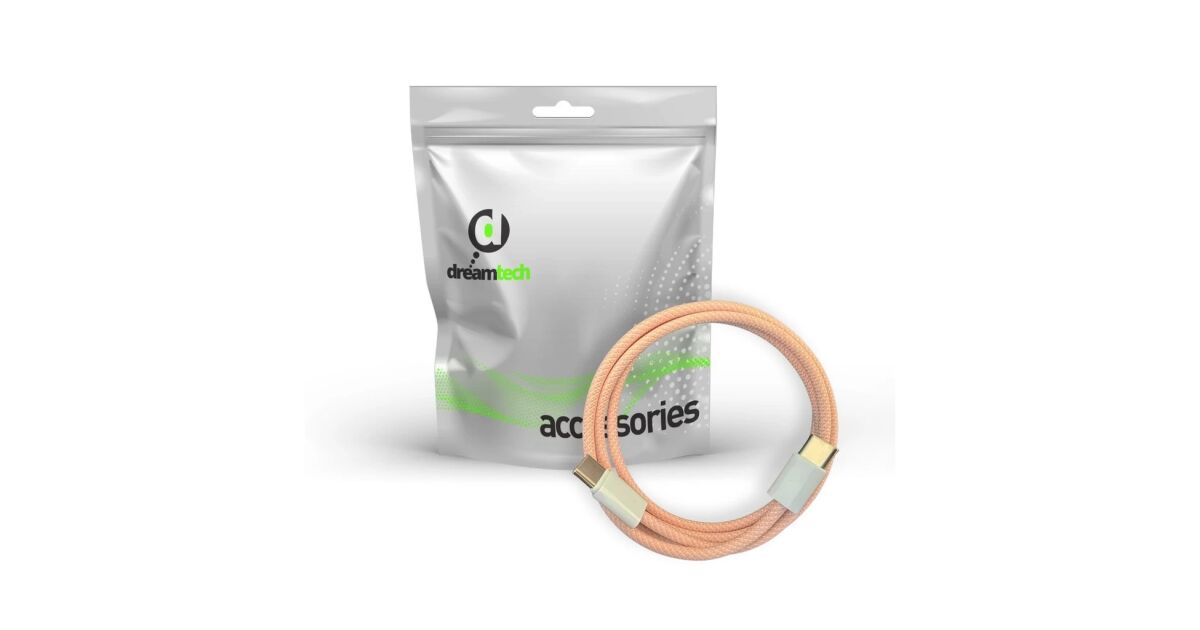 Cablu împletit Dreamtech PD roz USB-C / USB-C 3A 60W 1M Descriere