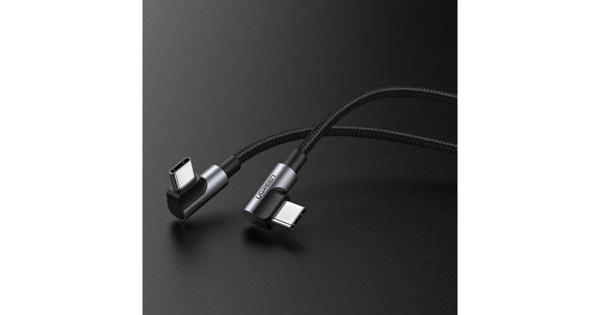 -Cablu alimentare si date Ugreen, Fast Charging,, USB Type-C la USB Type-C 60W/3A Angled 90° braided 1m, Negru (70529) Descriere