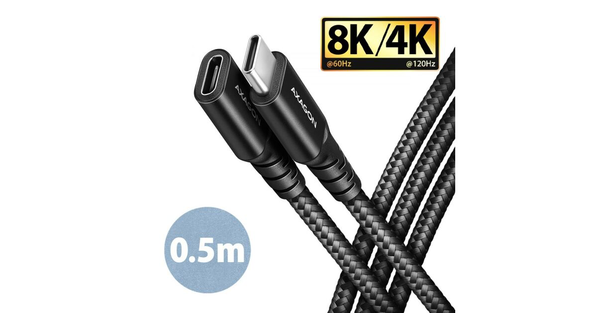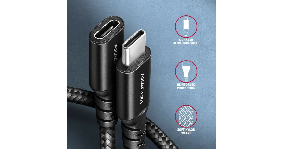 Cablu prelungitor USB-C USB-C de mare viteza Axagon BUCM32-CF05AB 20 Gbps, 0,5 m, negru
