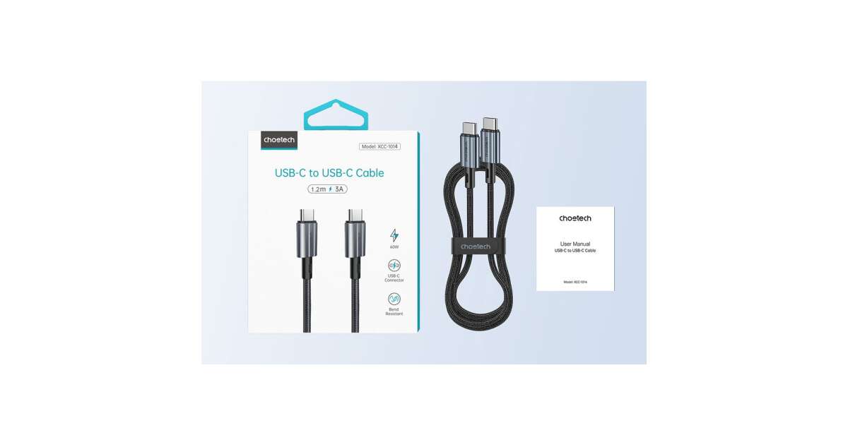 Cablu USB-C - USB-C, PD 60W, 1.2m, negru, textil, XCC-1014 Choetech (XCC-1014) Descriere