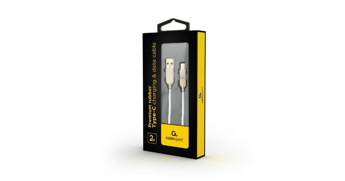 Cablu USB Masculă Gembird - USB Tip C Masculă, cauciuc premium, 2m, alb Descriere