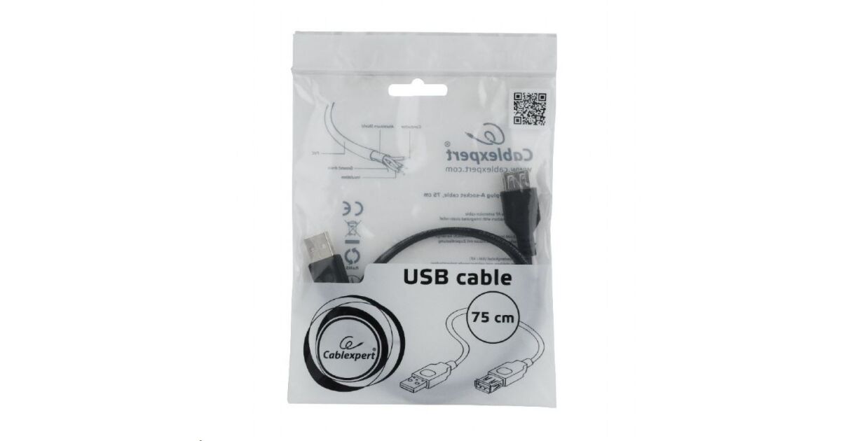 Extensor cablu, Gembird, USB 2.0, 0.75 m, Negru CC-USB2-AMAF-75CM/300-BK