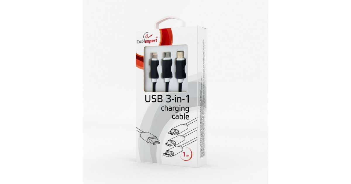 GEMBIRD CC-USB2-AM31-1M Cablu USB Gembird 3in1 pentru încărcare micro USB/USB-C/8-pin, negru, 1m