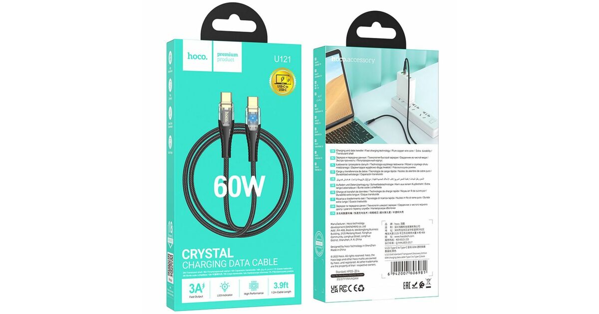 Acest cablu HOCO U121 USB-C la USB-C este alegerea perfectă pentru încărcare rapidă și sigură, precum și pentru transfer de date. Datorită designului său durabil, are o durată de viață lungă și funcționează fiabil.