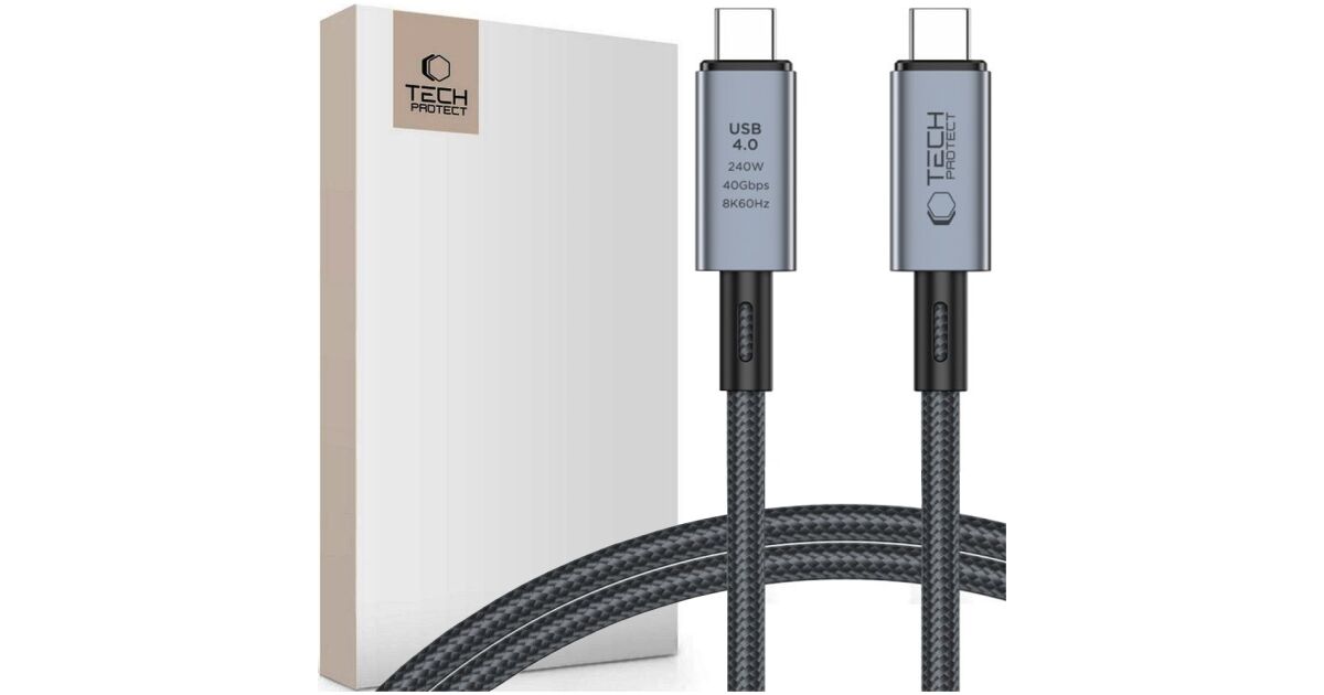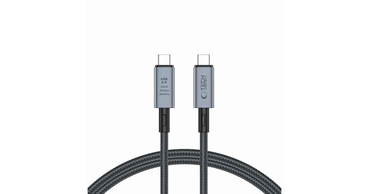 Cablu pentru incarcare si transfer de date TECH-PROTECT UltraBoost Max, 2x USB Type-C, 5A, 8K, 40Gbps, PD240W, 1m, Gri Descriere