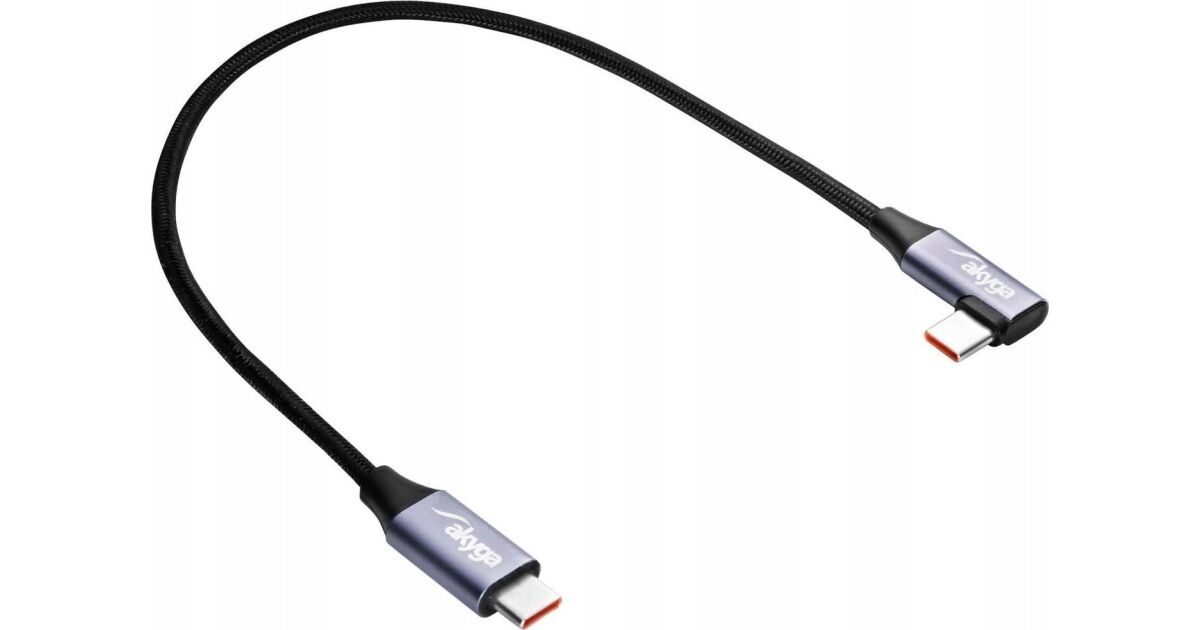 Cablul unghiular Akyga® AK-USB-53 USB-C cu o lungime de 30 cm este o soluție ideală pentru cei care apreciază ordinea și funcționalitatea. Cablul scurt este perfect pentru situațiile în care este necesară o conexiune compactă, reducând dezordinea de cabluri în spații precum mașini sau pe birouri.