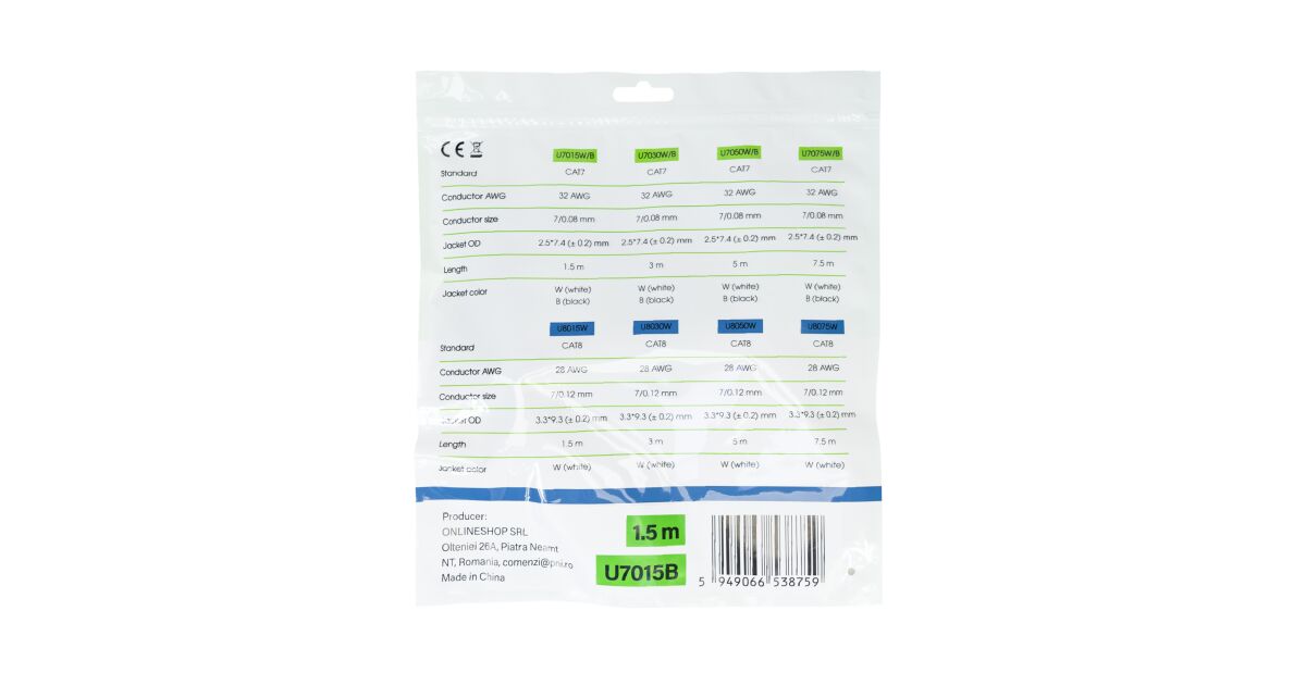 Cablul de rețea PNI U7015B CAT7 este o investiție inteligentă în viitor. Asigură-ți conexiunea la internet rapidă și stabilă de care ai nevoie pentru activitățile tale zilnice! ✨