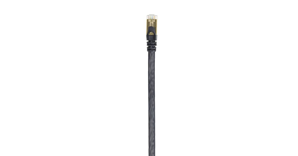 Cablu de retea plat S/STP CAT7 PNI U7015B, Patch, 2 x RJ45, 4 perechi de fire, 32AWG, cupru, 10 Gbps, 600 MHz, 1.5m, negru Descriere
