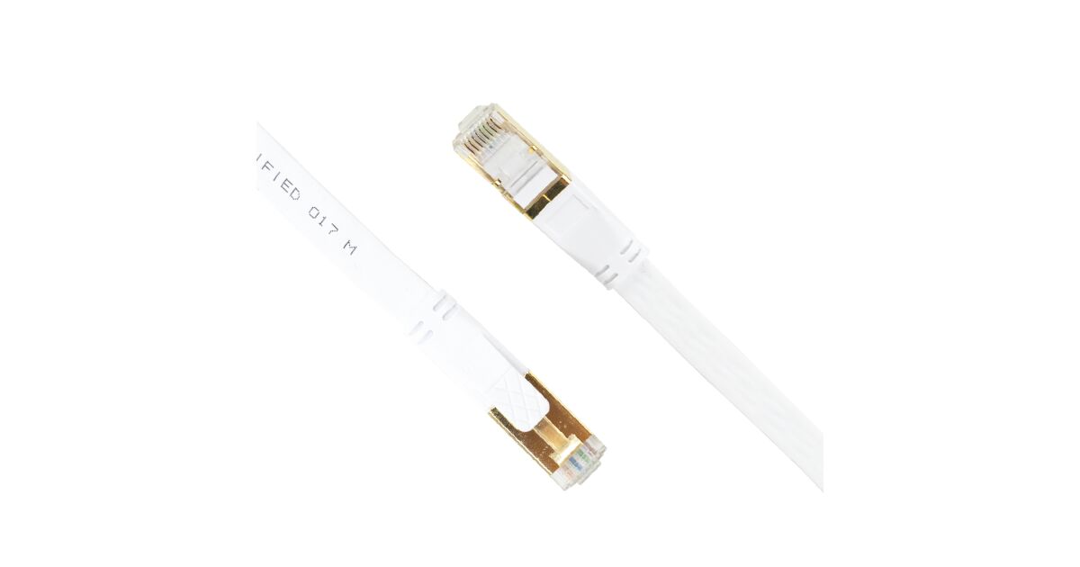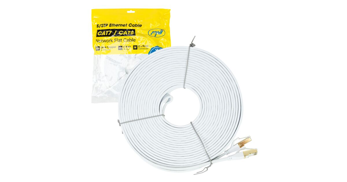 Cablu de retea plat S/STP CAT8 PNI U8200W, 2 x RJ45, 4 perechi de fire, 28AWG, cupru, 40 Gbps, 2000 MHz, 20m, alb Descriere