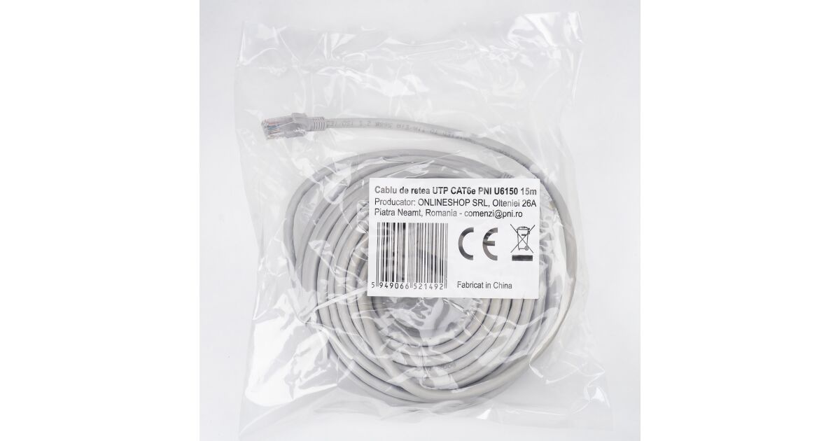 Cablu patch PNI U6150 15m CAT6e UTP: Conexiune stabilă pentru acasă și birou 🏠