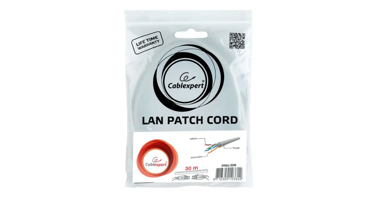 Cablu patch Gembird CAT6 UTP 30m - Conexiune rapidă și fiabilă la internet 🌐