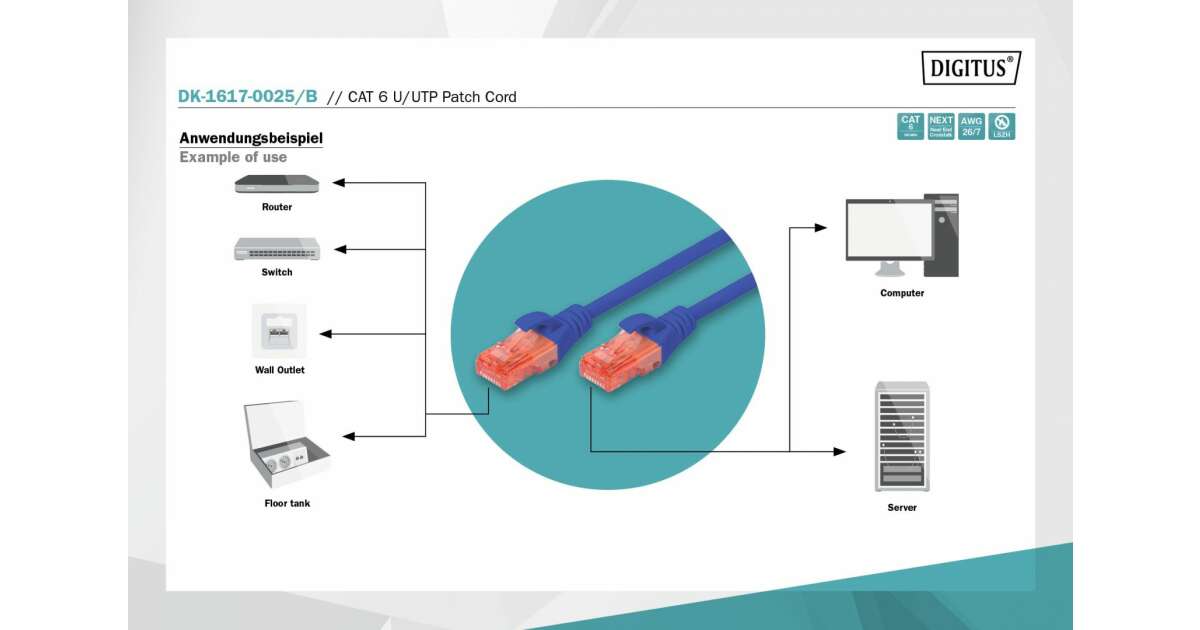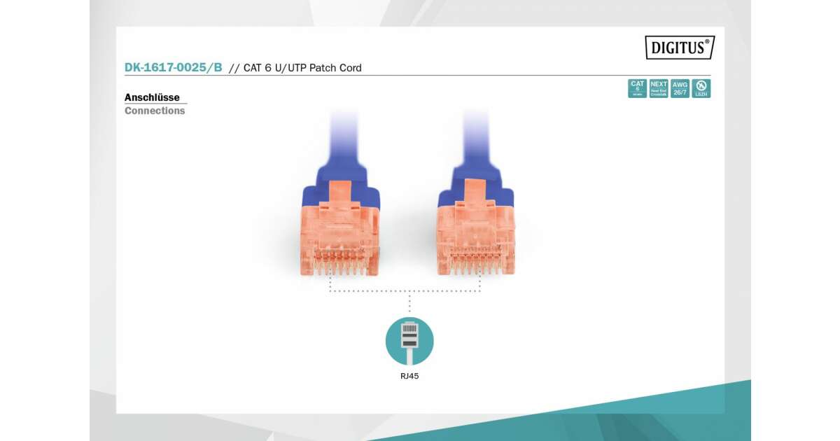 -Cablu de corectie Digitus CAT6 U-UTP 0,25 m albastru, cabluri de retea (DK-1617-0025/B) Descriere