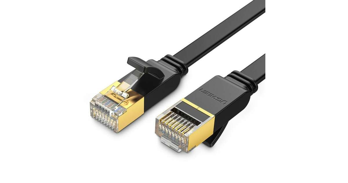 Cablu de rețea plat UGREEN NW106 Ethernet RJ45, Cat.7, STP, 8 m (negru) (11264) Descriere