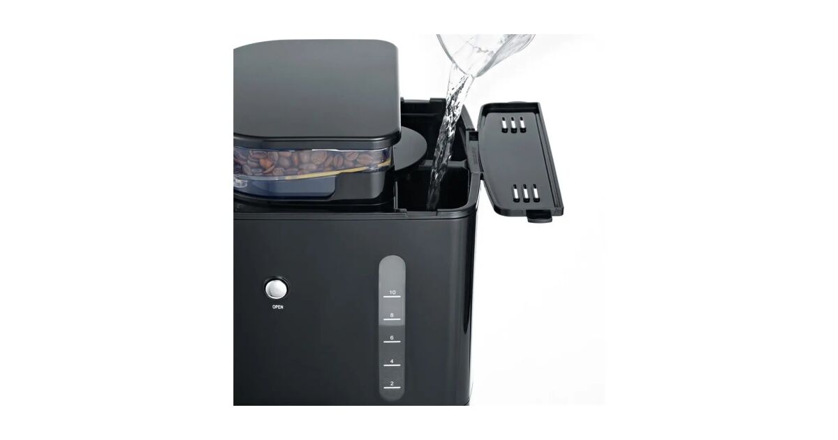 - Rezervor de apă de 1,5 litri: Suficientă apă pentru 10 cești de cafea.