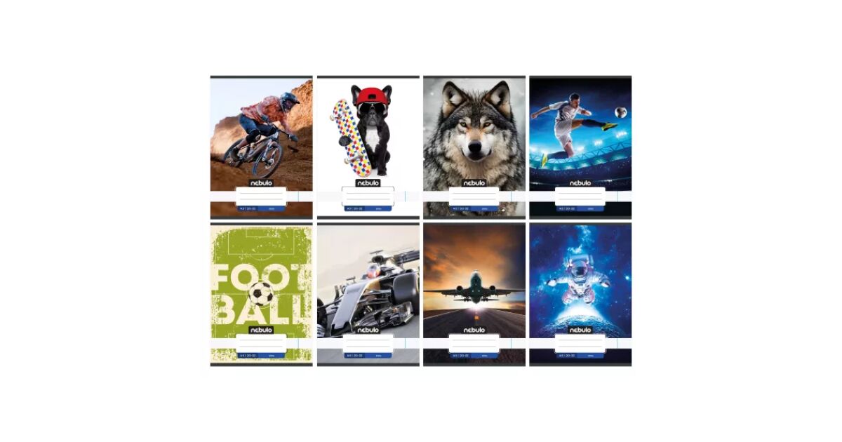Caiete Nebulo A5 cu modele șmechere - 16 buc/pachet ⚽️🏀🐺🚀