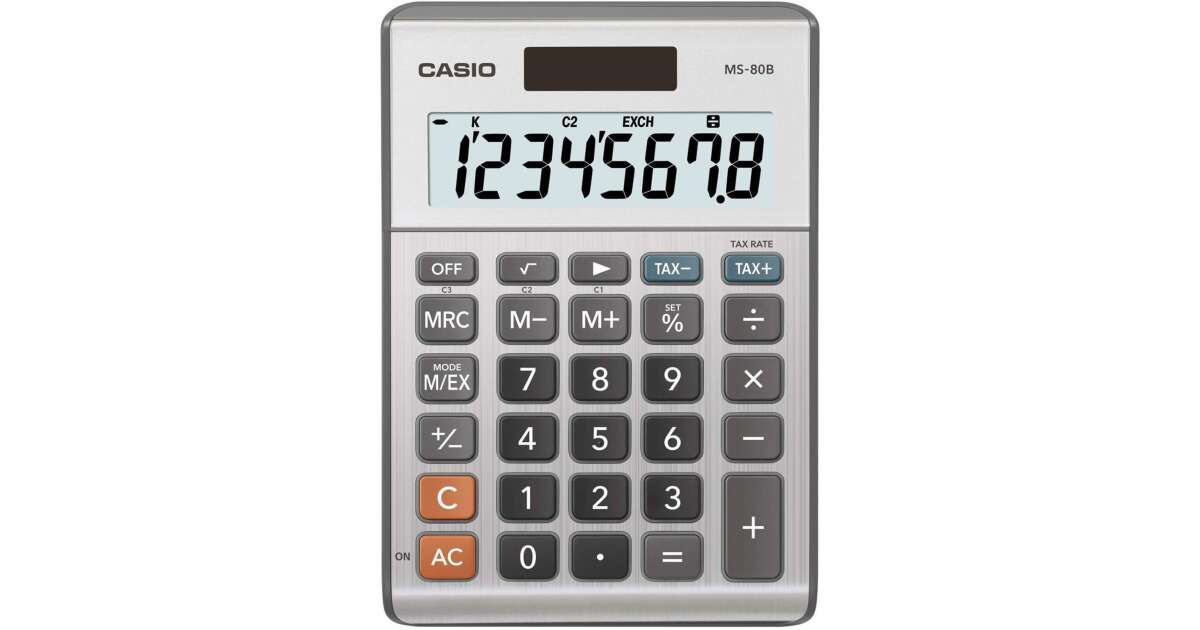 -Calculator de birou, Casio, Afisaj LCD, Gri (MS-80B S) (45010245) Descriere