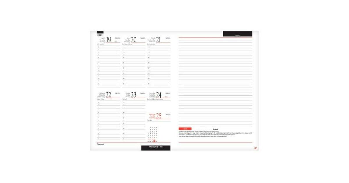 - Design practic: Dimensiune A5 (145x205 mm), legătură din piele artificială, cu panglică semn de carte.