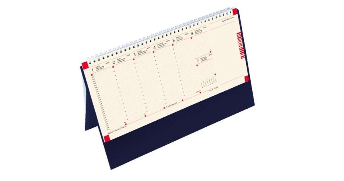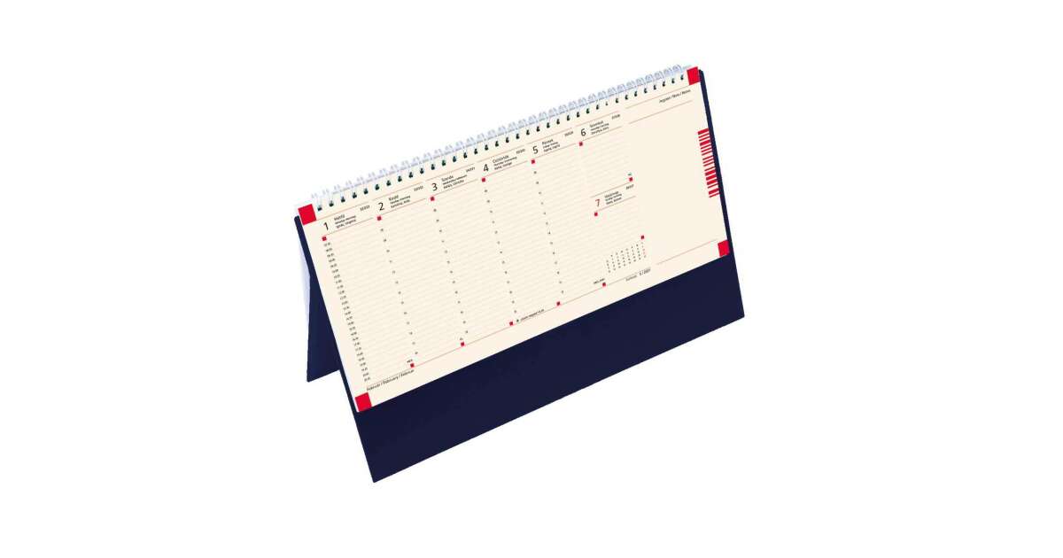 Calendarul vine într-o variantă elegantă, de culoare albastră, și se potrivește perfect în orice birou sau casă. Datorită hârtiei de calitate, însemnările sunt clare și ușor de citit.