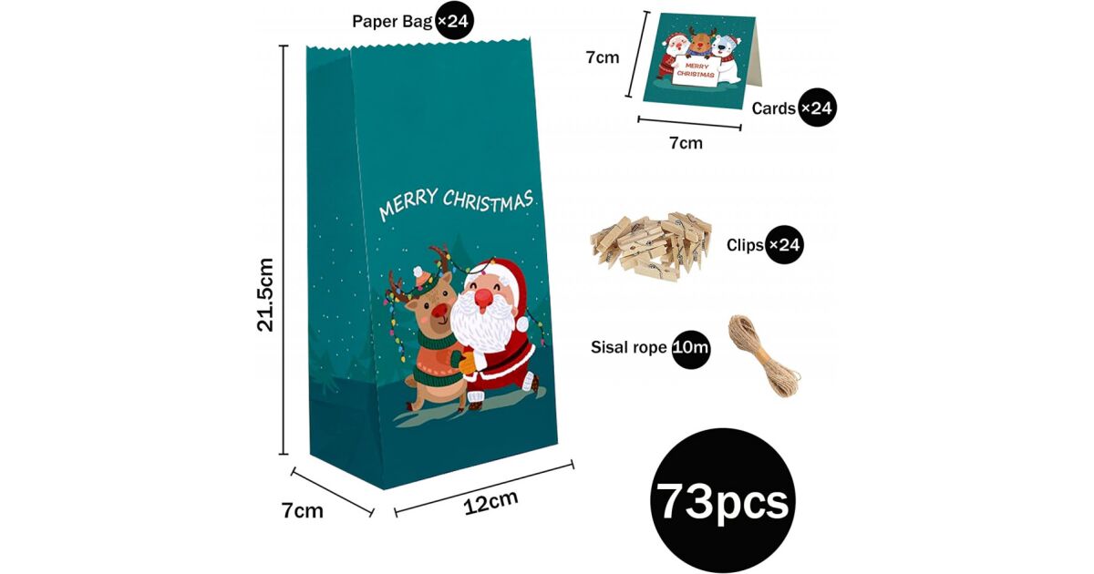 Creează o atmosferă magică de Crăciun cu acest calendar Advent fermecător! Cu 24 de pungi decorative reutilizabile, pline de culoare și modele festive, vei transforma numărătoarea inversă până la Crăciun într-o aventură încântătoare pentru întreaga familie.