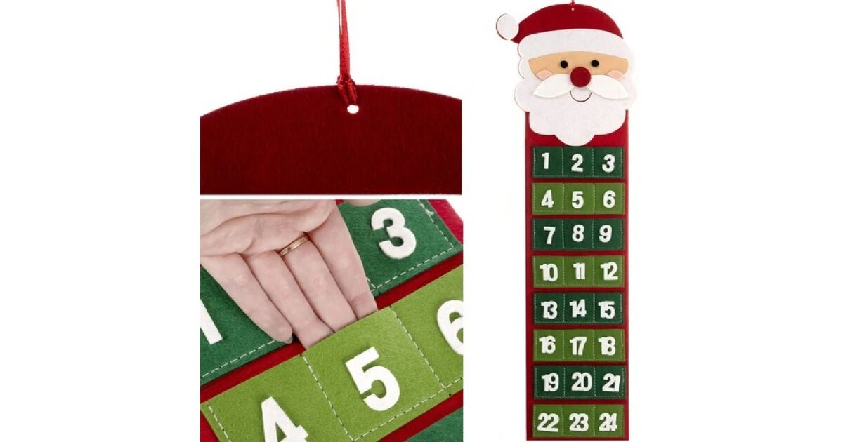 Calendar Advent din Felt cu Moș Crăciun Ruhhy - 24 de ușițe 🎅