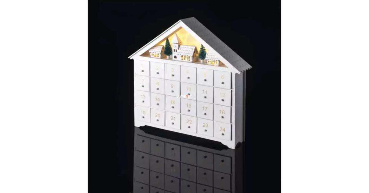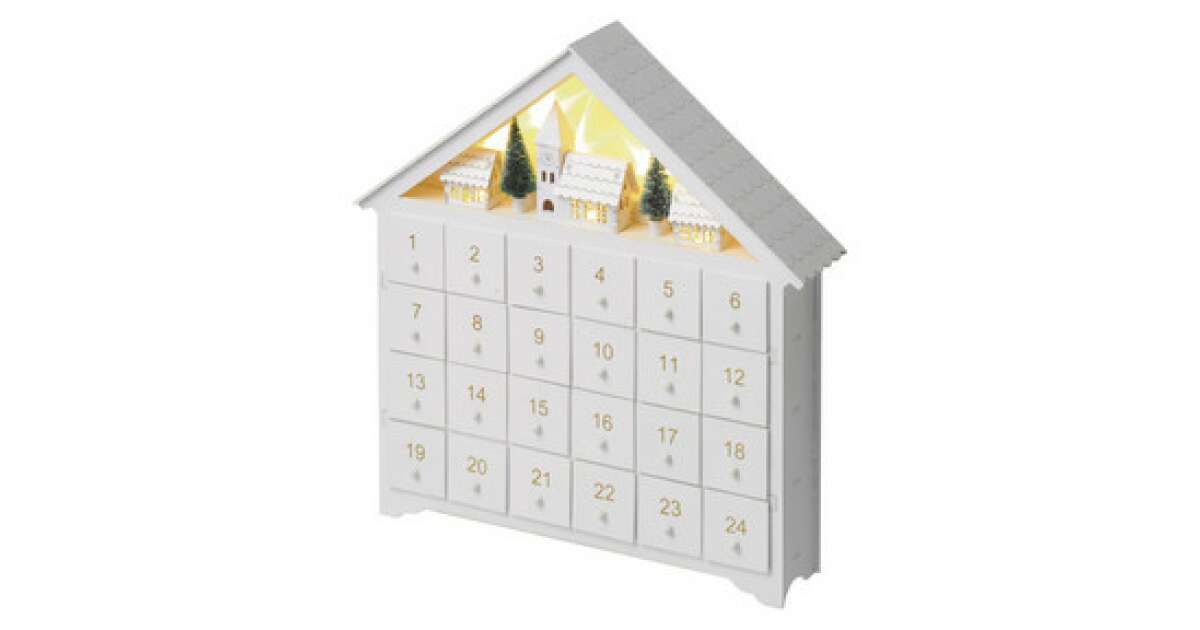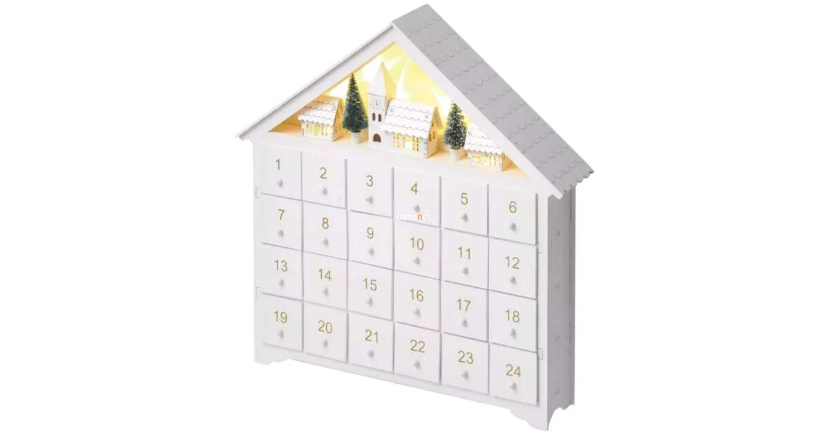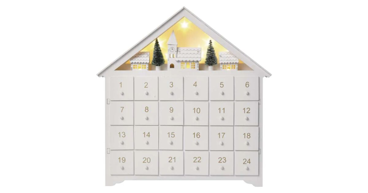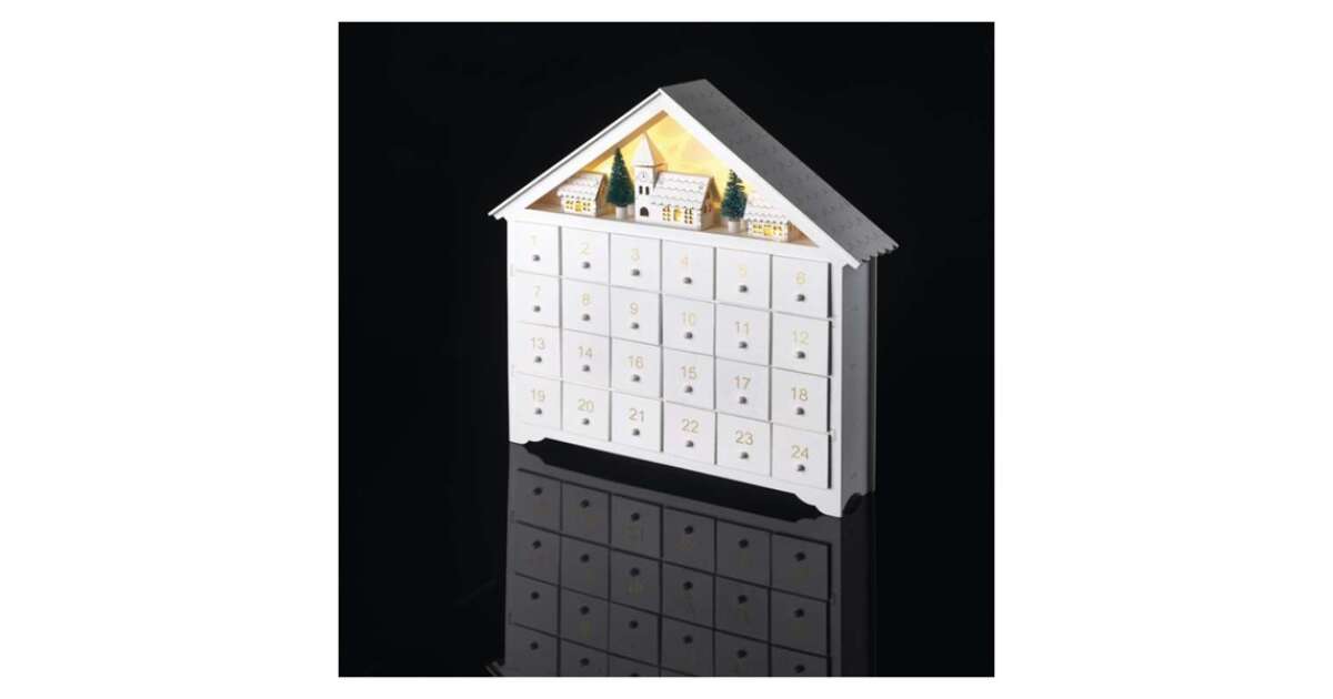 Acest calendar de Advent superb, din lemn alb, are 24 de sertare mici care așteaptă să fie umplute cu surprizele tale preferate de Crăciun! Iluminarea LED albă caldă încorporată creează o atmosferă magică în timpul sărbătorilor. ✨