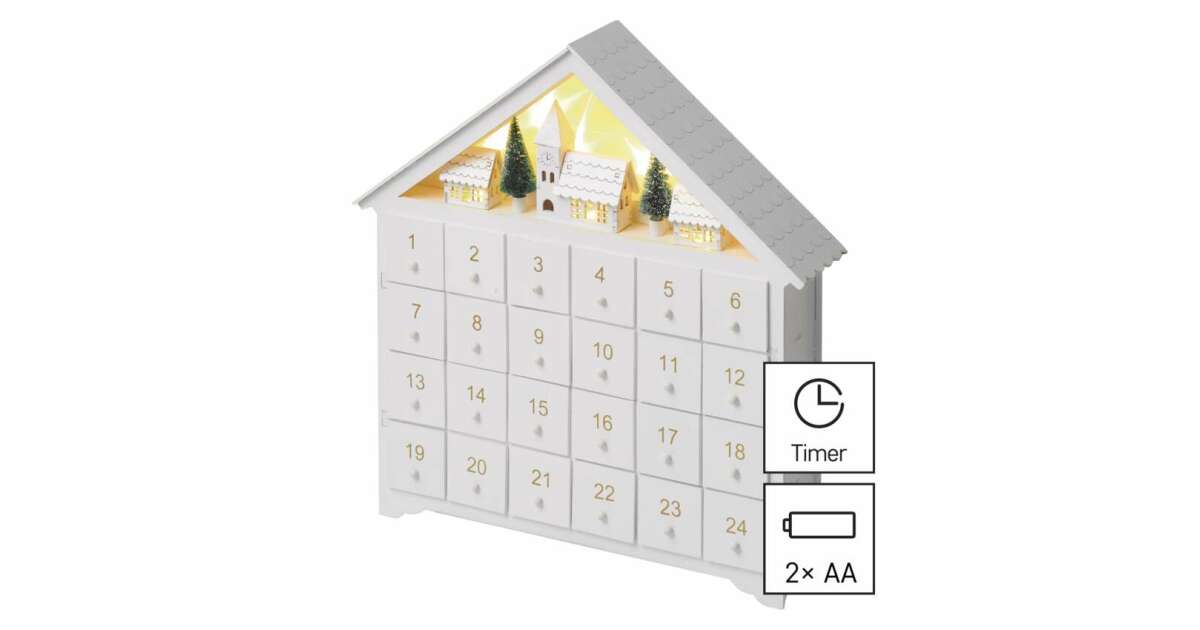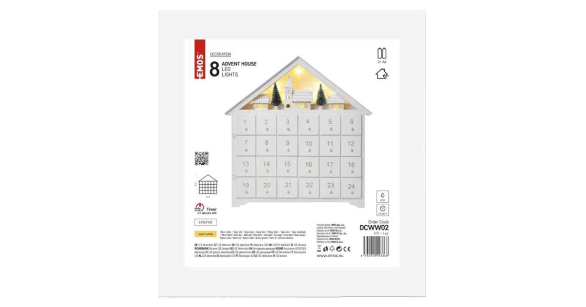 Decoratiune Craciun LED, Emos, Calendar de Advent, 35x33cm, Cu cronometru 2xAA, Alb cald (DCWW02) (DCWW02) Descriere