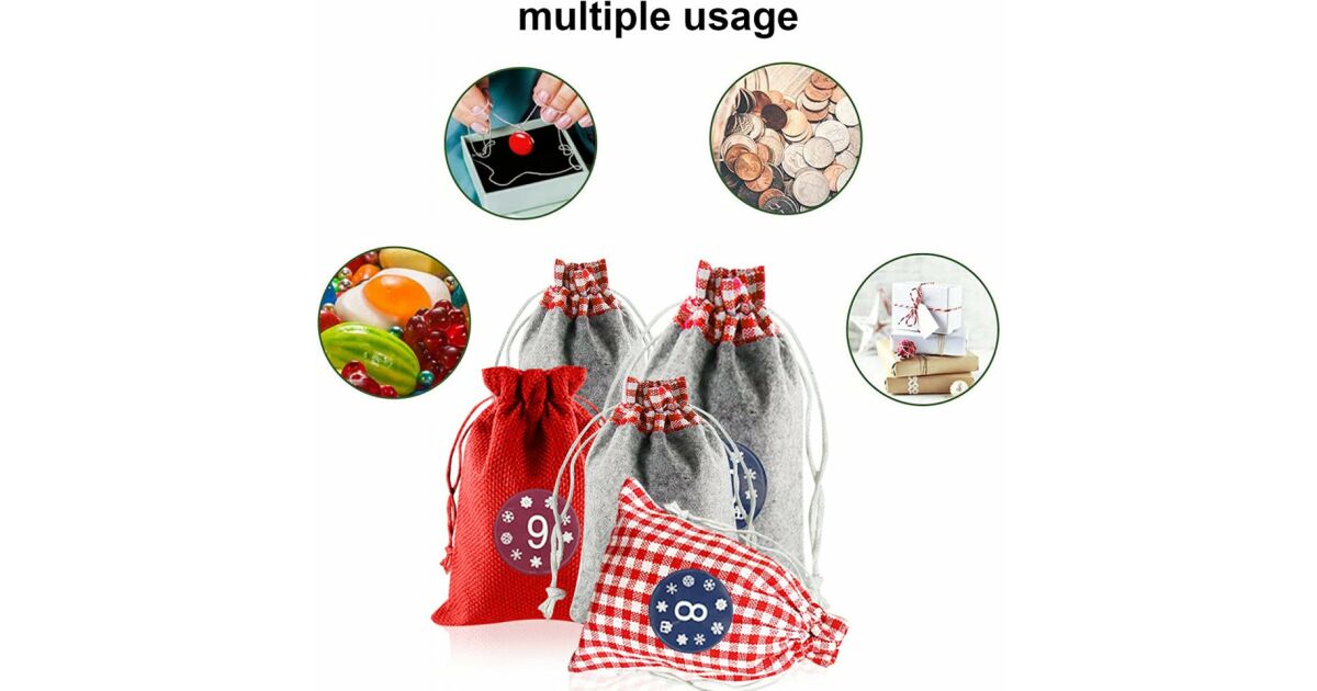 Pregătește-te pentru Crăciun cu acest set versatil de săculeți pentru cadouri! Perfect pentru a crea un calendar de Advent, dar poate fi folosit și pentru alte ocazii.