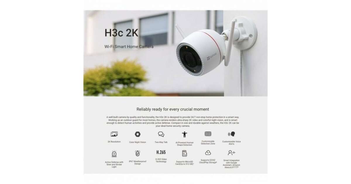 Această cameră inteligentă Ezviz H3C 2K este alegerea perfectă pentru a-ți îmbunătăți siguranța casei. Bucură-te de imagini cristaline la rezoluție 2K, atât ziua, cât și noaptea! Conectarea Wi-Fi simplifică instalarea și utilizarea, în timp ce protecția IP67 garantează utilizarea în exterior.