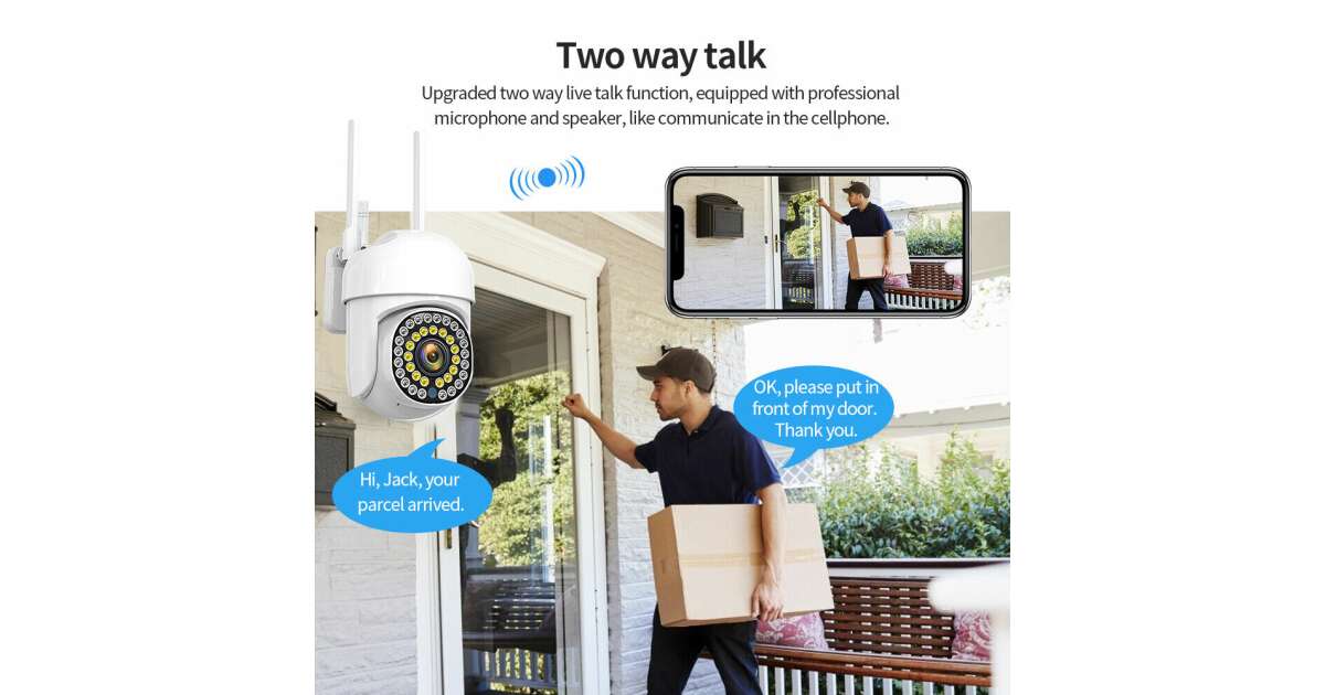 - Audio bidirectional: Comunica direct prin camera, folosind microfonul si difuzorul incorporate.