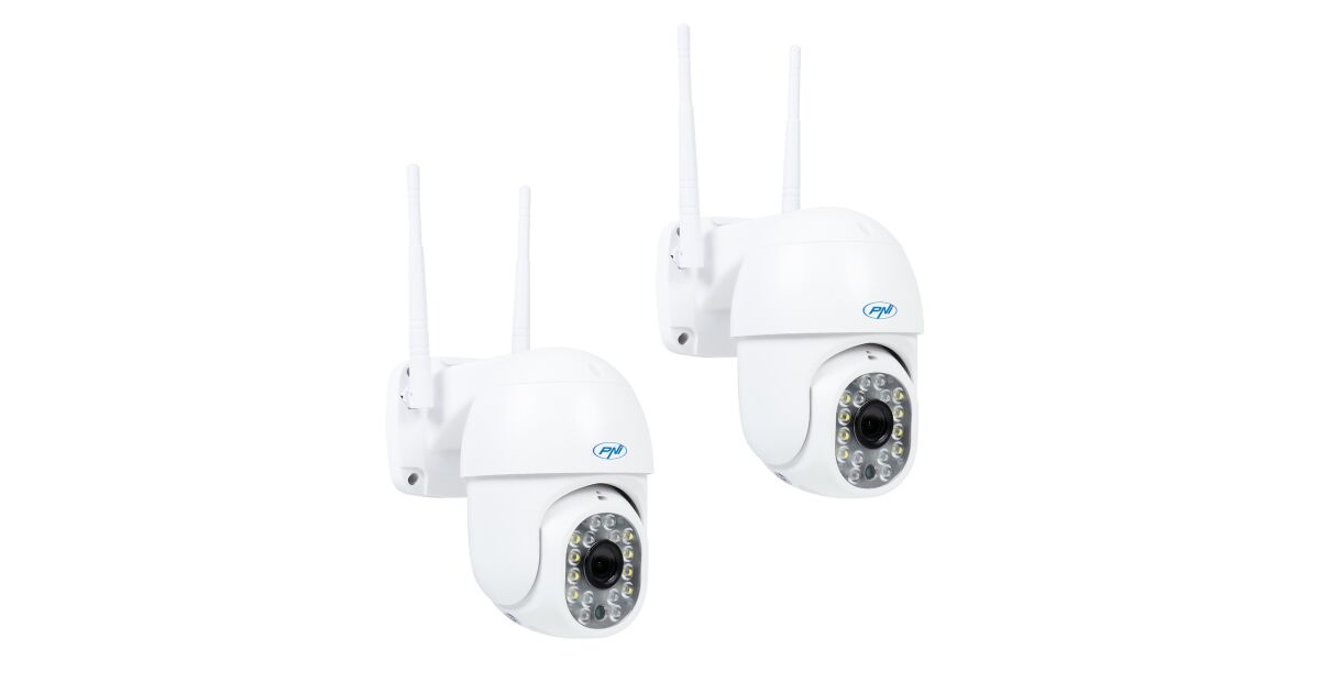 Kit 2bucati Camera supraveghere video wireless PNI IP440 WiFi PTZ, 4MP, zoom digital, slot micro SD, stand-alone, alarma detectie miscare, urmarire miscare