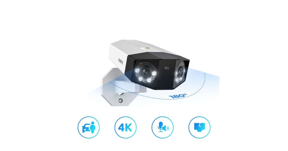 Camera IP Reolink Duo 2 PoE 4K: Panoramă 180°, dublu unghi vizual