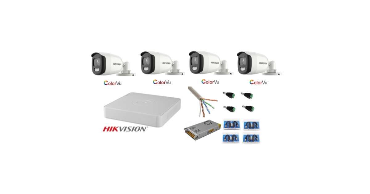 Sistem CCTV Hikvision: 4 camere 5MP Ultra HD Color VU funcționare continuă (color noaptea)
