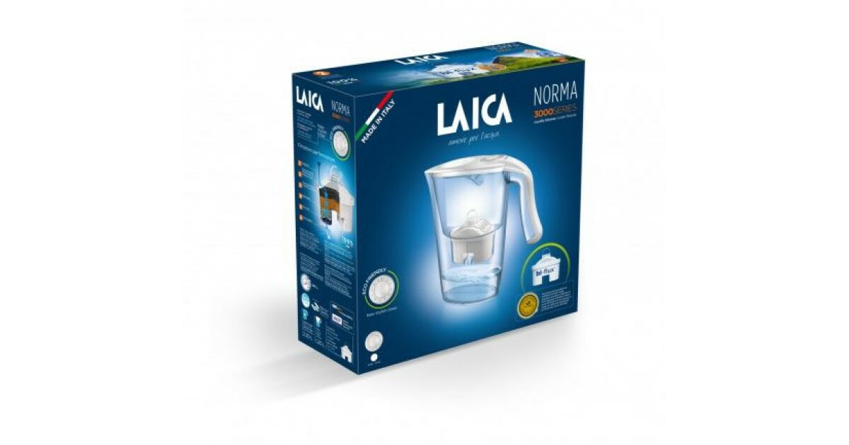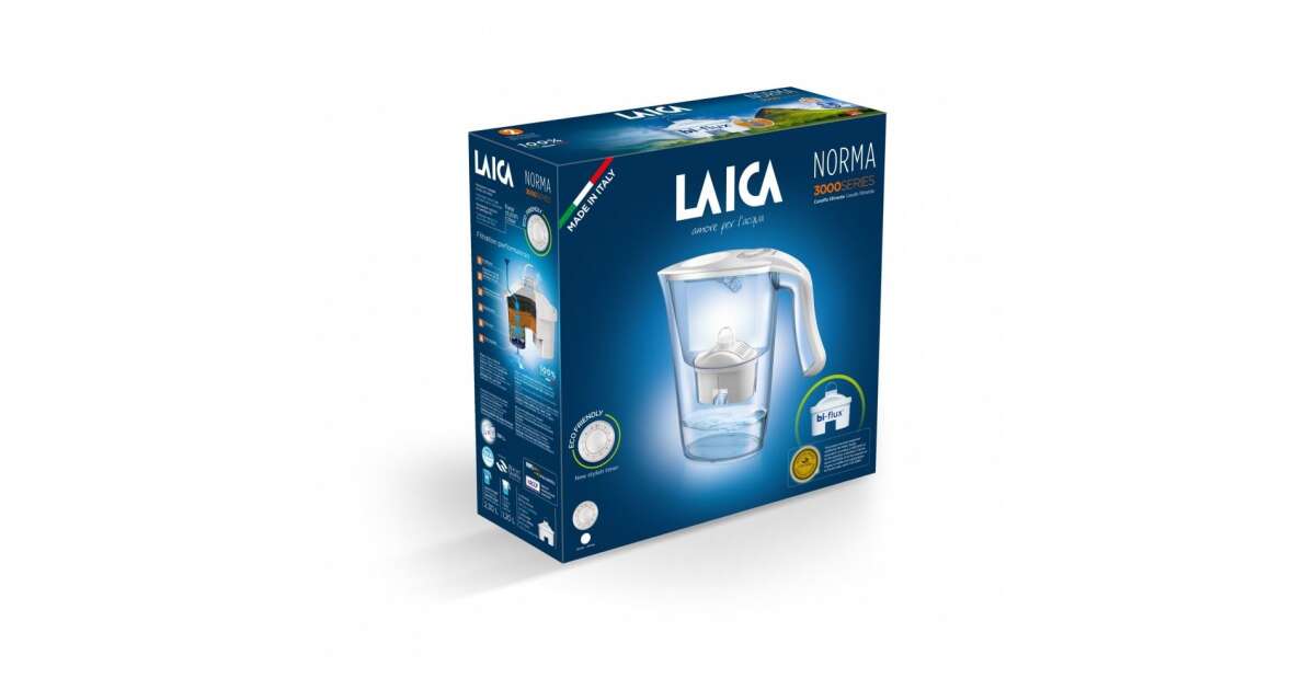LAICA J35DA CARMEN NORMA carafă cu filtru de apă cu afișaj mecanic și 1 filtru universal Bi-flux, alb Descriere