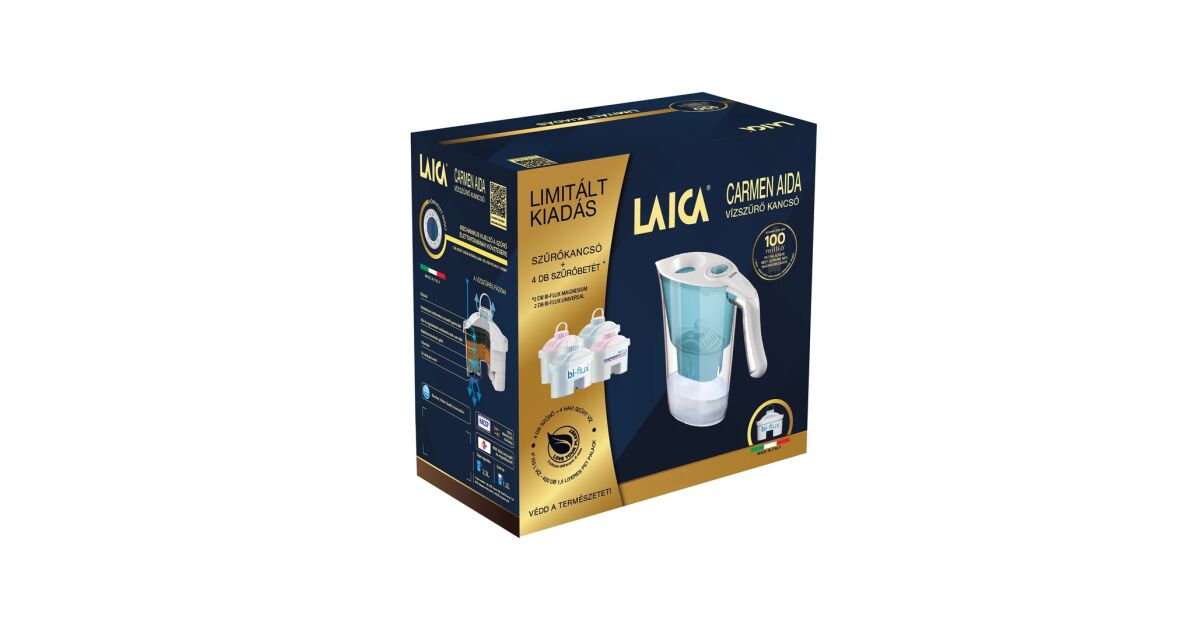 LAICA J9075A1 Carafă cu filtru de apă Carmen Aida în ediție limitată, cu 2 filtre de magneziu și 2 filtre universale Bi-flux Descriere