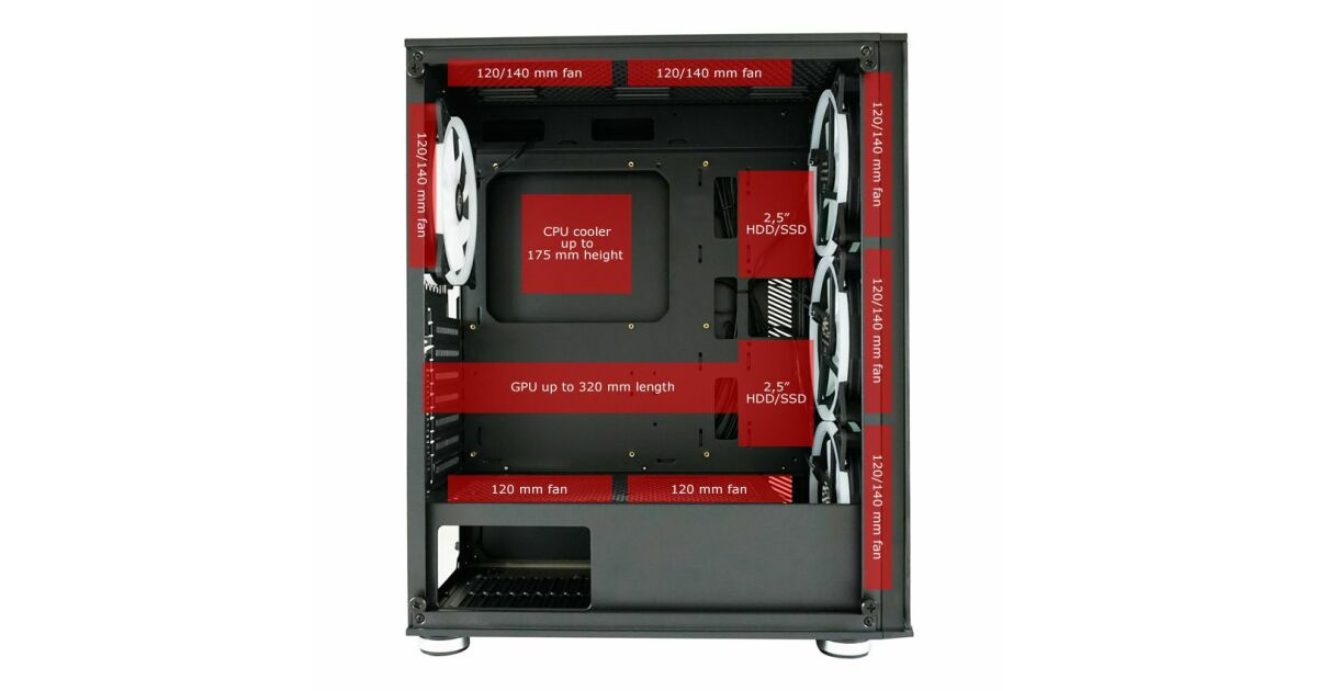 Această carcasă PC elegantă și funcțională este alegerea perfectă pentru un PC de gaming. Cu designul Shaded-X și iluminarea RGB, iese în evidență față de celelalte, în timp ce sistemul excelent de răcire asigură funcționarea optimă a componentelor.