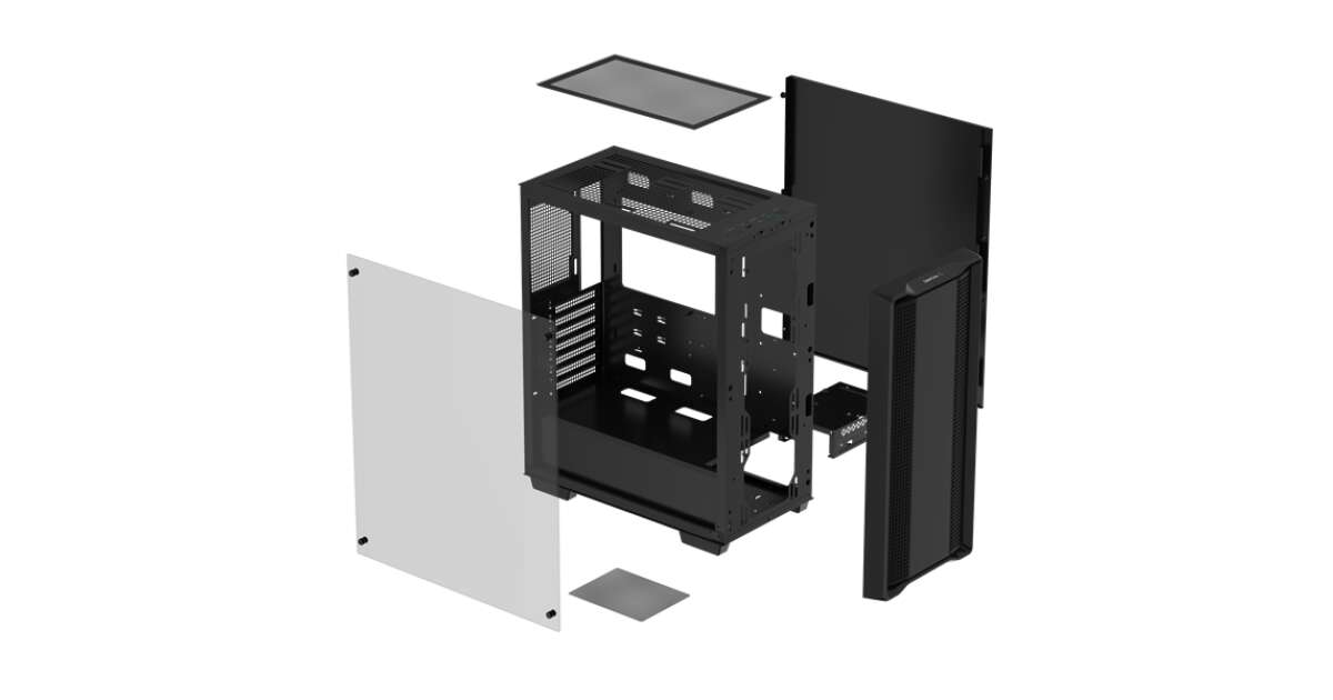 Această carcasă Deepcool CC560 e alegerea perfectă dacă îți dorești un PC cu mult spațiu și o ventilație excelentă. Designul modern și panoul lateral din sticlă securizată arată minunat componentele interne.