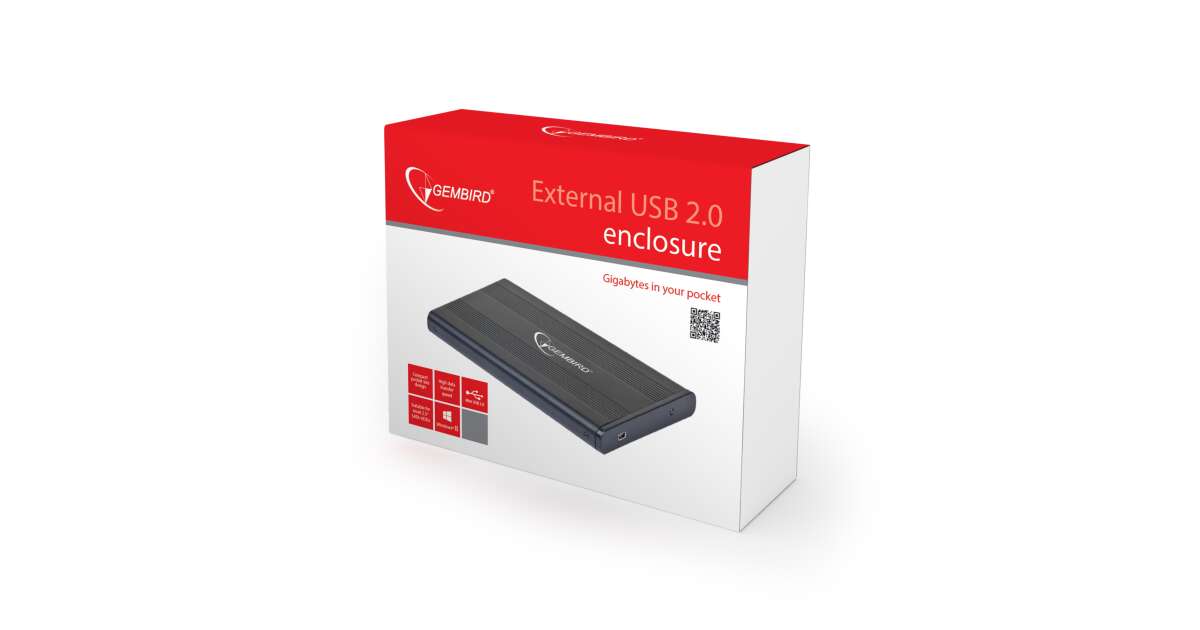 HDD enclosure Gembird for 2.5'' SATA - USB 2.0, Aluminium, Black (EE2-U2S-5) (EE2-U2S-5) cumpărați de la: