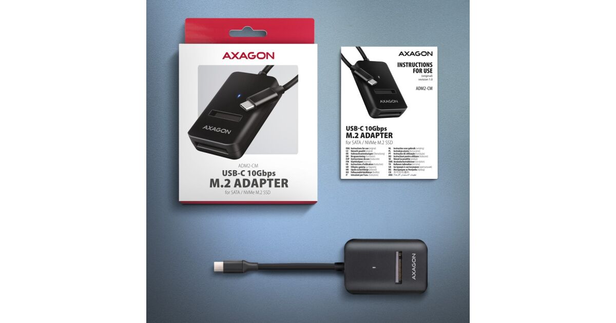 Axagon AXAGON ADM2-CM USB-C 10Gbps USB HUB - Adaptor SSD M.2 NVMe & SATA, cablu USB-C de 10 cm