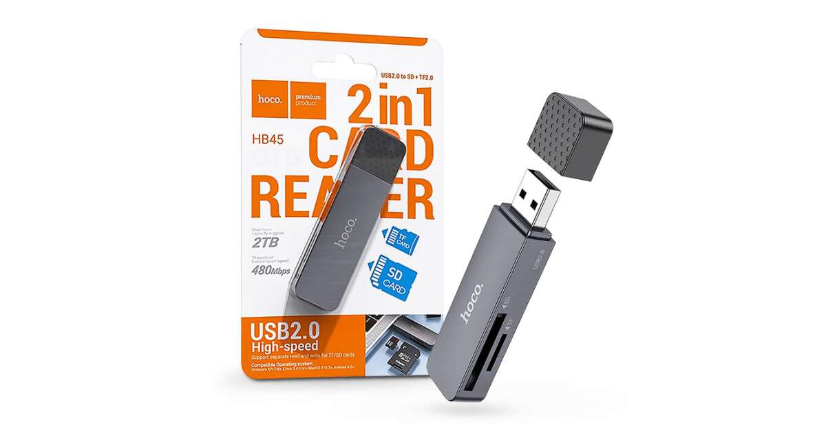 -HOCO SD/microSD USB mermóriakártya-olvasó - HOCO HB45 OTG 2in1 Card Reader - fekete/szürke Descriere
