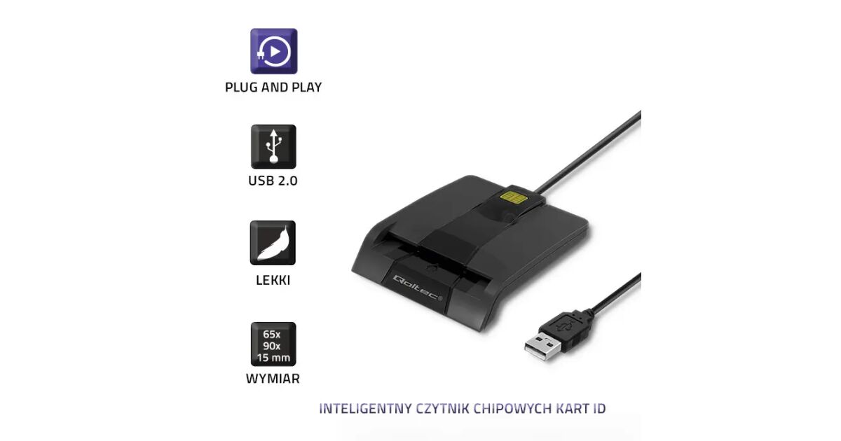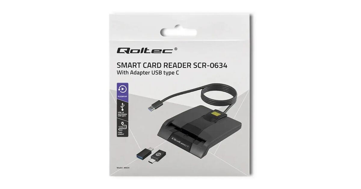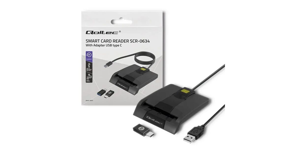 QOLTEC 50634 Cititor inteligent de carduri cu cip de identitate inteligent SCR0634 USB tip C