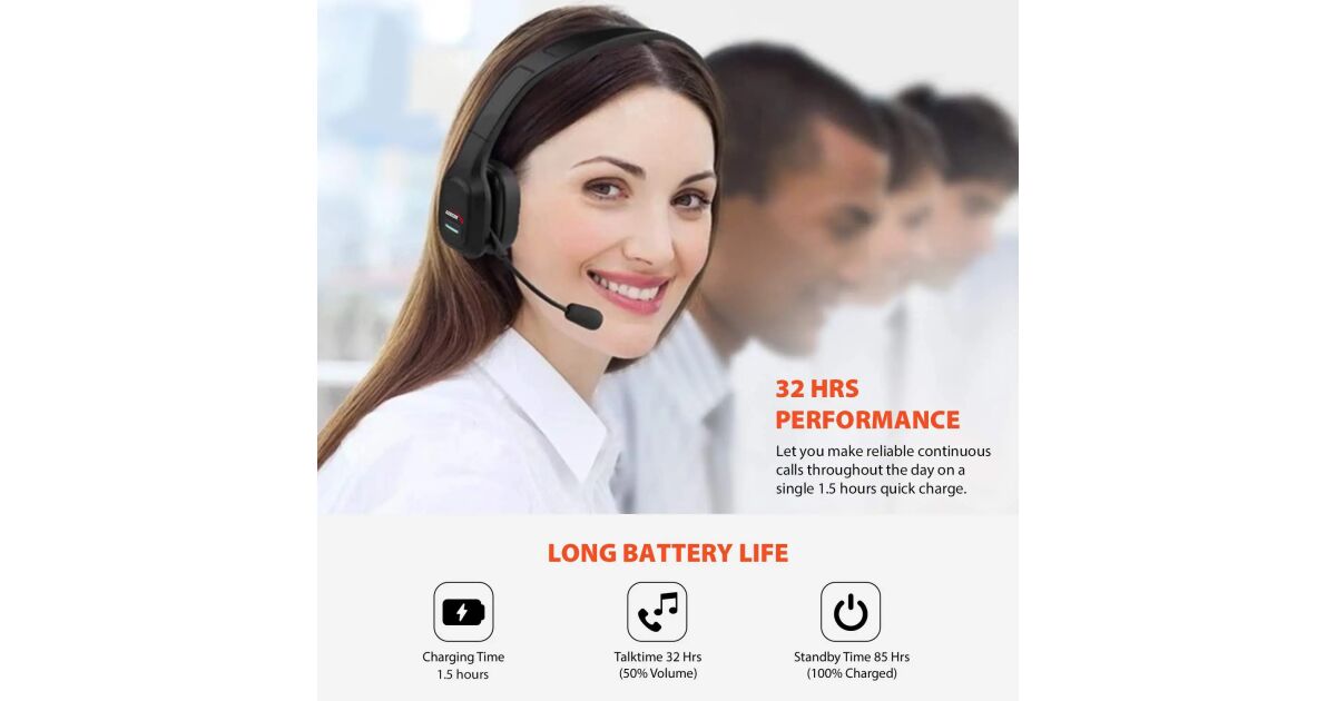 Aceste căști Bluetooth de înaltă calitate sunt perfecte pentru call center-e, birou, lucru de acasă, studiu și chiar și în timpul condusului. Funcția de anulare activă a zgomotului (ANC) îți permite să lucrezi sau să te bucuri de muzică fără întreruperi, chiar și în medii zgomotoase.