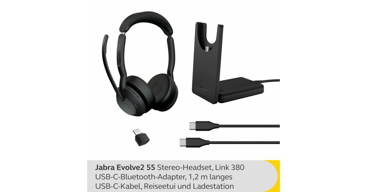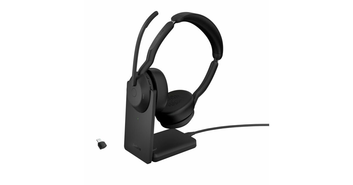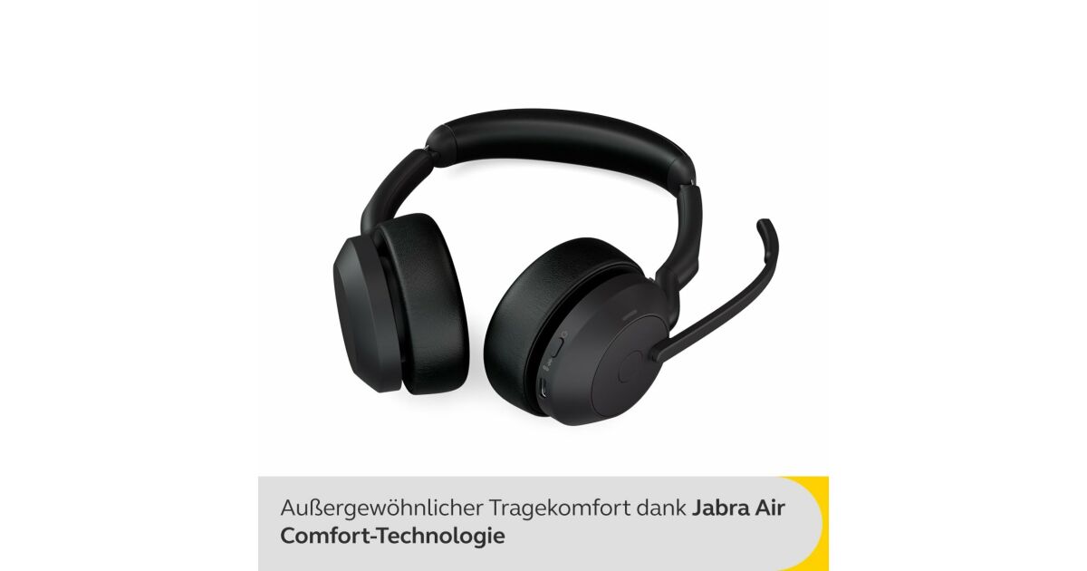 Jabra Evolve2 55 - Casti stereo fara fir cu statie de incarcare Air Comfort - Microfoane cu anulare a zgomotului si ANC - Compatibil cu toate platformele UC, cum ar fi Zoom si Google Meet - N