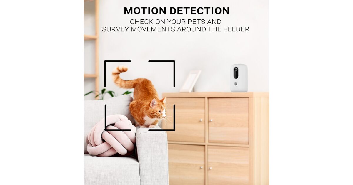 HRĂNIRE INTERACTIVĂ CU CONTROL PRIN APLICAȚIE: Acest dozator oferă hrănire automată pentru animalul dvs. de companie în funcție de programul ales, precum și hrănire instantanee pentru a-l răsfăța în orice moment convenabil! Hrănitorul automat dispune și de funcție de blocare a butoanelor pentru a împiedica prietenii dvs. blănoși inteligenți să se hrănească singuri. VEDERE NOCTURNĂ: Hrănitorul pentru pisici are un mod de vedere nocturnă cu o rază de acțiune de 5-8 m, permițându-vă să monitorizați locul în care se află animalele dvs. de companie în casă și să le auziți sunetele în orice moment al zilei de la distanță. HRĂNIRE AUTOMATĂ: Hrănitorul pentru animale de companie oferă opțiuni de hrănire automată, manuală și programată, însoțite de înregistrare în timp real. CONTROLUL PORȚIILOR: Monitorizarea aportului de hrană și controlul porțiilor vă oferă control complet asupra dietei animalului dvs. de companie, asigurându-vă că micuții dvs. prieteni nu sunt niciodată supra-hrăniți sau sub-hrăniți. SENZORI DE MIȘCARE: Senzorii de mișcare ai acestui hrănitor pentru câini vă permit să primiți notificări pe telefon atunci când ceva vă îngrijorează sau când animalele dvs. de companie sunt în apropiere. Această funcție vă permite, de asemenea, să monitorizați mișcările în jurul hrănitorului.