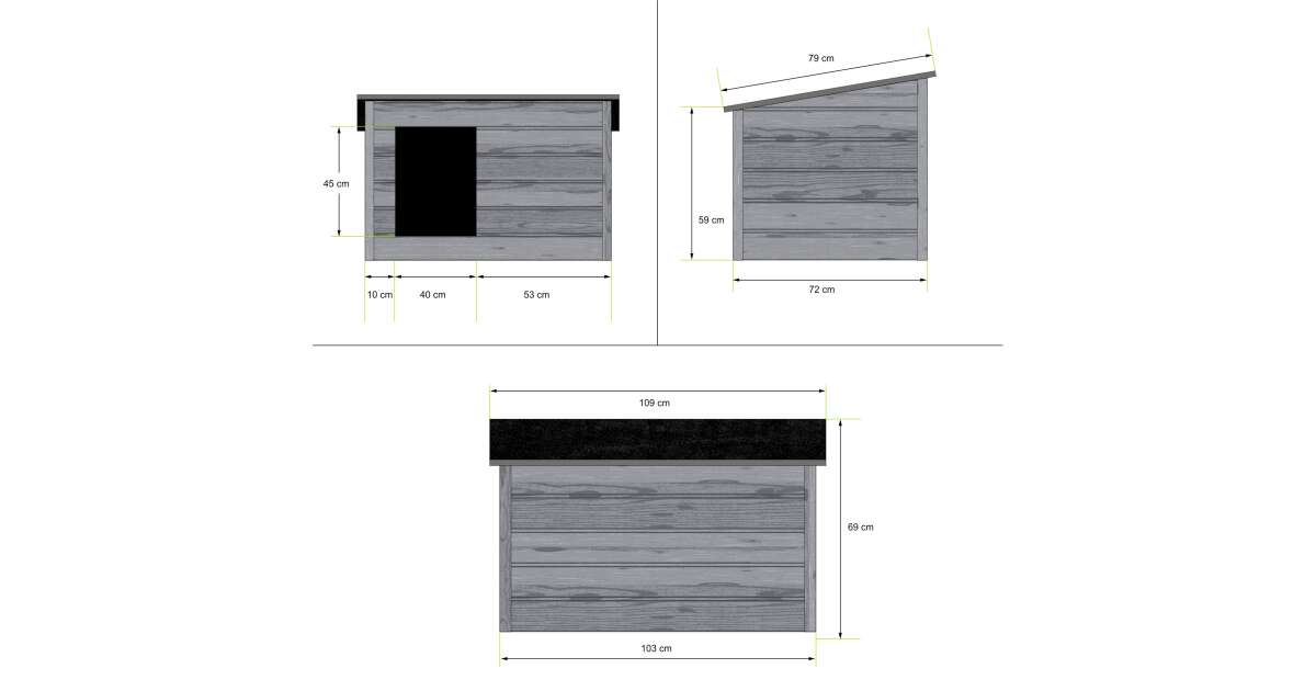 - Căsuța pentru câine este impregnată, dar vine nevopsită. Vopseaua este inclusă în pachet, astfel încât să o puteți colora după propriul gust.
